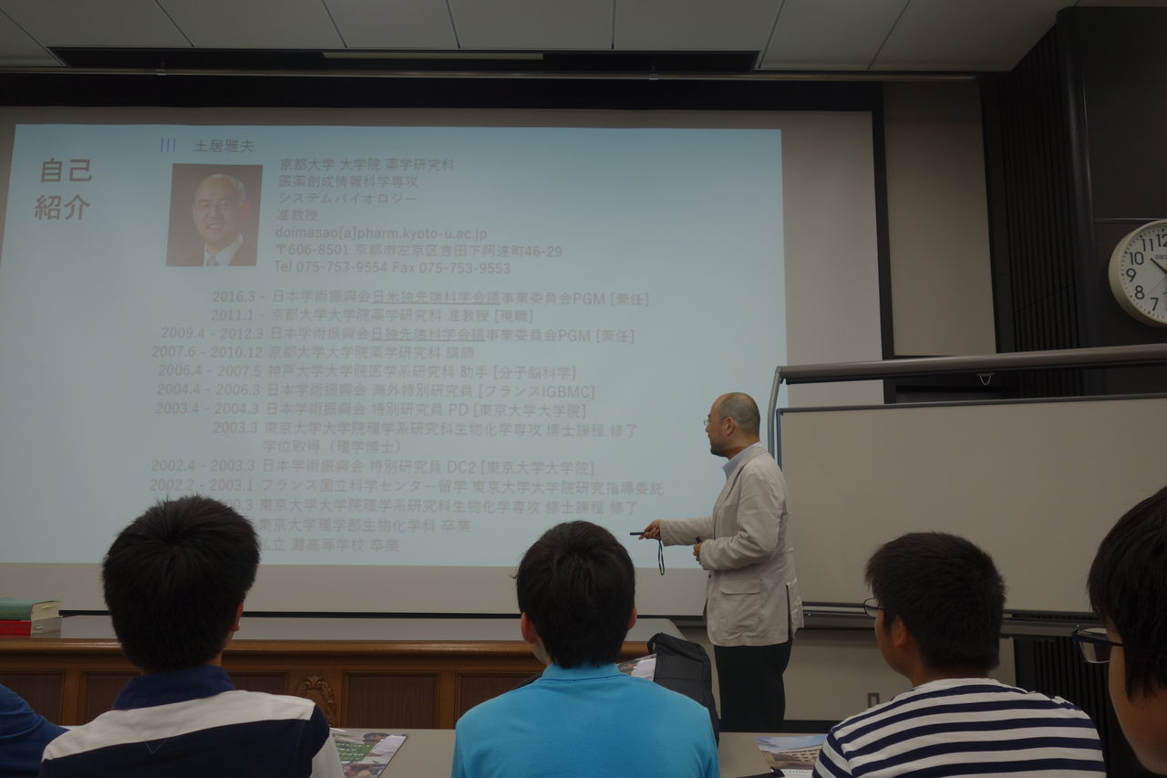2017年08月24日 京都大学研究室見学 さんすうLAB.卒業生の中学生達と一緒に京都大学薬学研究科の土居雅夫准教授の研究室を見学させていただきました。普段中々触れることのない最先端の研究を覗き、また研究者の方の熱い講義を受け、子供たちにとっても貴重な体験になったのではないでしょうか。